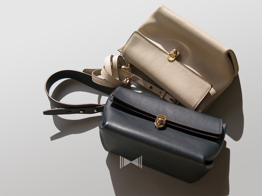 包包外观由整块皮革折叠而成,柔软而有型。不同尺寸下搭配不同背带,可以成为斜背包、胸包、腰包等多种形态。 Folded by a whole piece of leather. The soft but origami styled design could transform into sling bag, chest bag and waist bag with different straps.