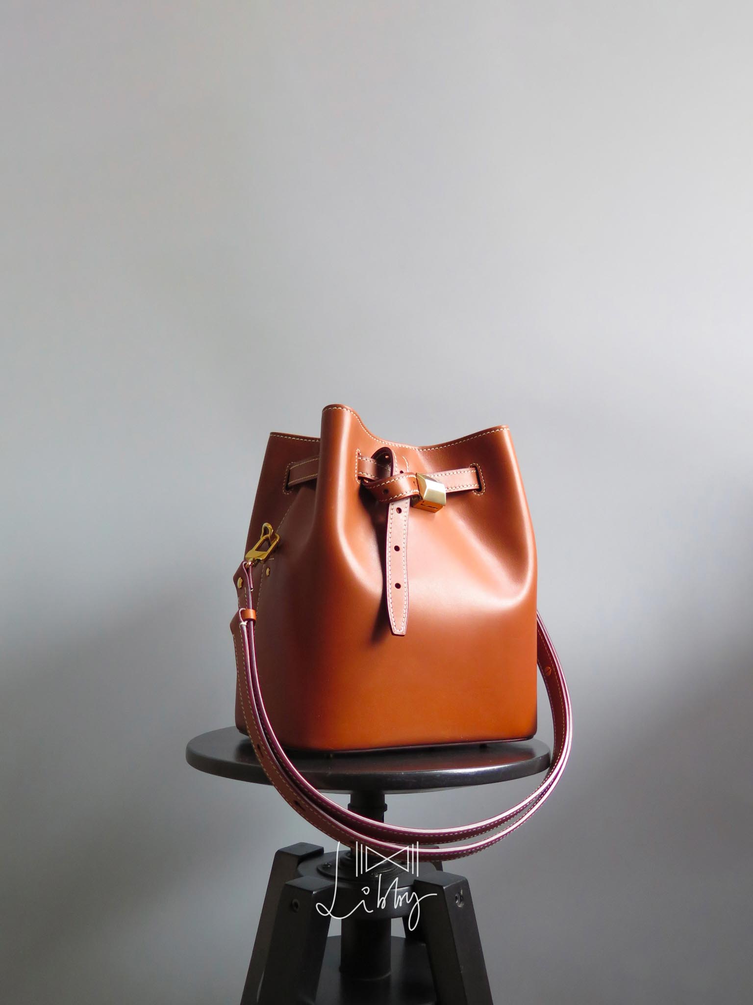 在开口方式上留了小心机的水桶包,名字来自“袋口皮带抽紧后可以在末尾打个结”。